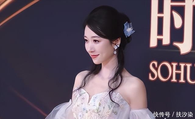 与白色礼裙相互映衬更显光彩照人。其颜值和肌肤状态在无修图的镜头下经受住了考验